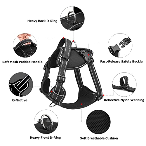 Elevant Pettorina Cane, Anti Tiro Imbracatura Antifuga Cane Riflettente con Impugnatura Morbida, Pettorina Cane Taglia Piccola Grande Media Regolabile, Traspirante per Corsa Passeggiate (L, Nero)