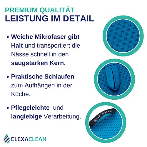 Elexaclean, tappetino antigoccia, in microfibra, protezione per cucina, lavello e stoviglie (2 pezzi, 44 x 41 cm, turchese/verde/blu)