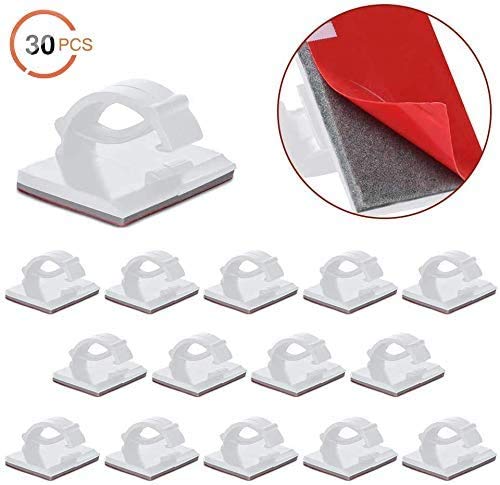 30 Pezzi clip fermacavi da parete con adesivo, clip per cavo di fissaggio per organizzatore cavo a fibra ottica, cavo di Rete, ed cavi di alimentazione (TV/PC/USB/ADSL/Telefono).