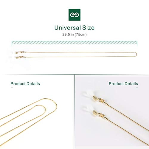Eli-time Catene per occhiali da donna - Catene per occhiali da sole in metallo Catene/Supporti per occhiali/Cavi per occhiali con estremità in silicone antiscivolo (Oro)