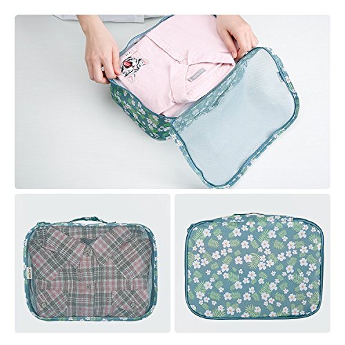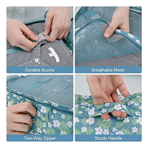 ElifeAcc Packing Cube Set Travel Organizer 6Pcs BW Flower