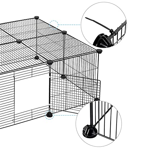 ELIGHTRY Recinto per Conigli Recinzione per Piccoli Animali Gabbia per di Stoccaggio per Porcellino d'India Cuccioli Cavia Metallico con porta DIY 16 Pannelli (35x35cm/Pannello) Nero 109 x 74 x 39 cm