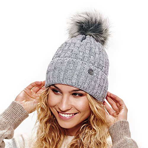 ELIMELI Berretto e sciarpa da donna invernale caldo berretto invernale da donna con pompon, set invernale lavorato a maglia, berretto invernale da donna, grigio., Taglia unica