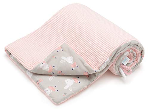 EliMeli Coperta per bambini, 100% cotone, calda coperta per bambini, in tessuto a nido d'ape, con imbottitura, ideale come coperta per passeggino, regalo per ragazzi e ragazze (rosa - coniglio)