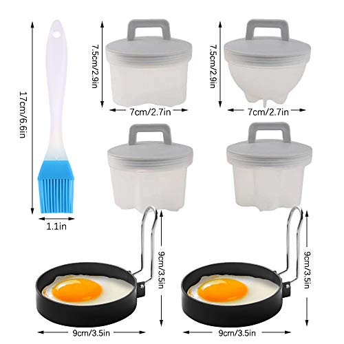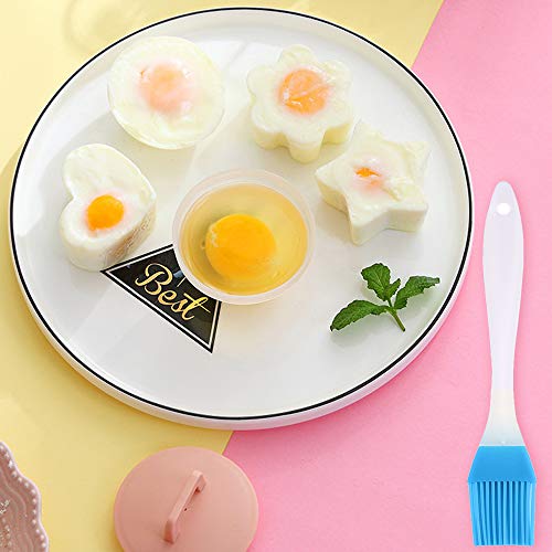 Elinala Anello Uovo, Uova in Camicia, Mini Anello per Uovo Fritto in Acciaio Inossidabile da 4 Pezzi e Set per Portauovo in Plastica da 2 Pezzi Viene Fornito con Un Pennello per Olio
