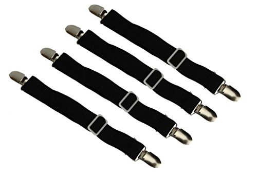 Elinka - Set di 4 cinghie di fissaggio regolabili per lenzuolo, per materassi e lenzuola, colore: nero