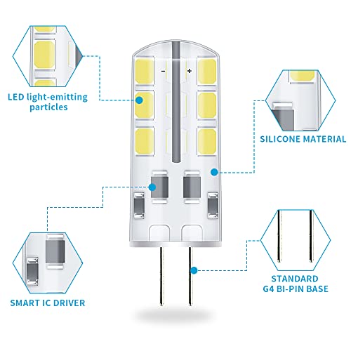 Luce fredda brillante:La lampadina LED G4 da 3W emette 260lm con un angolo di 360 gradi,la luce bianca fredda 6000K offre un ambiente luminoso e piacevole senza luce blu CRI>75 riproduce perfettamente le cose alla luce,rendendo gli oggetti luminosi e vividi,permettendoti di godere di colori più naturali e accurati.