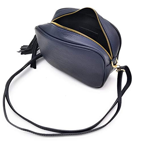 ELIOX Borsa Donna Vera Pelle Made In Italy Piccola Borsetta a Tracolla Elegante Moda Crossbody Bag Genuine Leather (Blu)