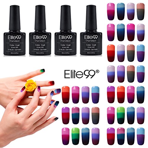 Elite99 Smalto Camaleonte Semipermanente per Unghie in Gel UV LED Smalto Cambia in 3 Colori con Temperatura 4pcs Kit Ricostruzione per Unghie Smalti Semipermanenti Soakoff - 009