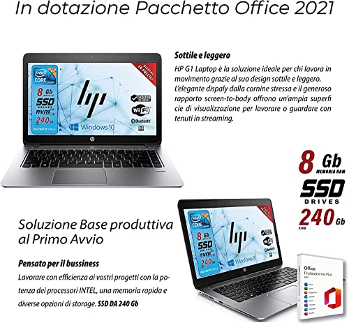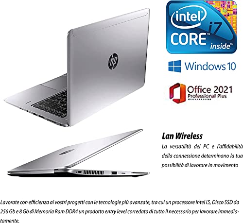 HP Elitebook Folio, Notebook Pc portatile Pronto All'uso, Display 14", Intel Core i7, Ram 8GB, SSD 240GB, Win 10Pro, Pacchetto Office 2021 (Ricondizionato)