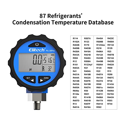 Elitech Manometro digitale per aria e gas compatibili con retroilluminazione, gamma -0,100~5.000 MPa, Nero, ✩12 mesi di garanzia✩