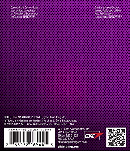 Elixir corde 16544 chitarra acustica di bronzo fosforoso con Nanoweb rivestimento, set da 3 pezzi