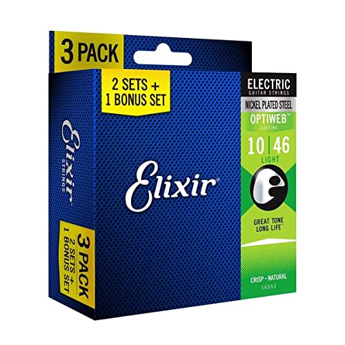 Elixir corde 16552 acciaio nichelato per chitarra elettrica con rivestimento Optiweb, set da 3 pezzi