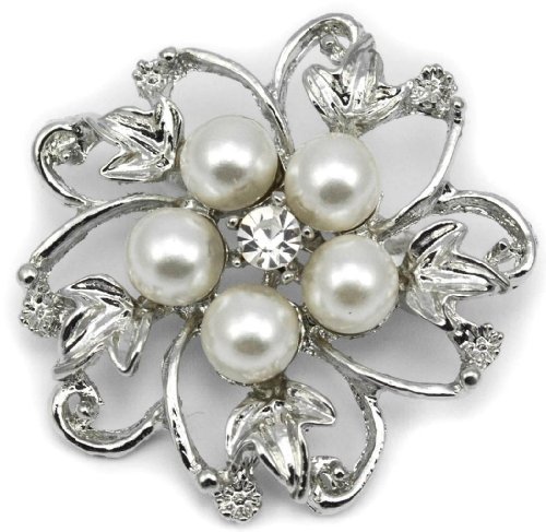 Elixir77UK Color Argento Bouquet Di Fiori Regalo Spilla Con Perle Finte e Semplice Cristallo VENDITORE UK