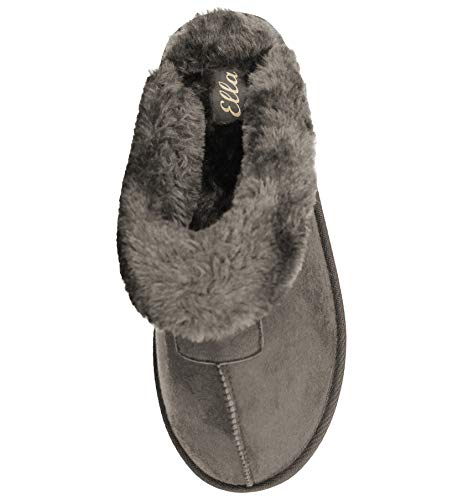 Ella JiLL, pantofola per donna, bambina e ragazza, in finta pelliccia foderata, scamosciata, un regalo invernale di classe, Grigio (Grey), 42