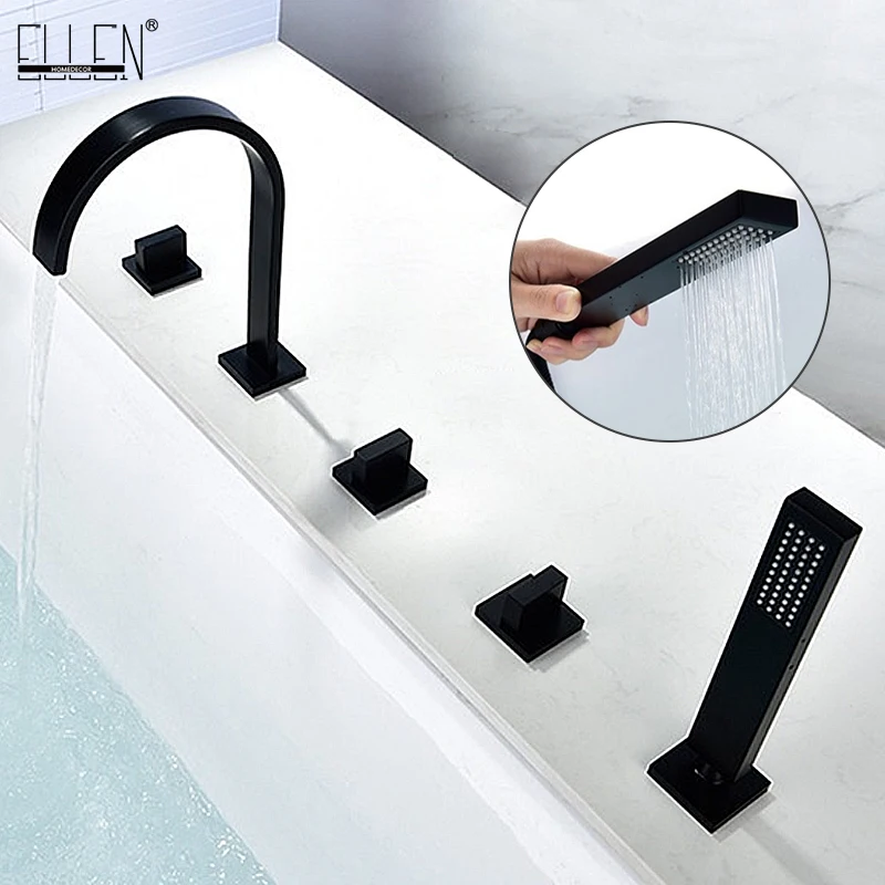 ELLEN Bathtub Faucets Mixer for Bath Tub Square 5 Hole Hot and Colder Water Crane with Hand Shower Chrome Finished EL7911B