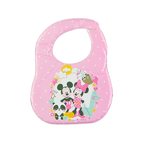 Ellepi Set Pappa Topolino Minnie Disney Tovaglietta Bavaglino Velcro Imbottito Plastica Svezzamento Bambini Neonato Mesi Merenda Kit Silicone (Minnie), 41.5cm X 30cm