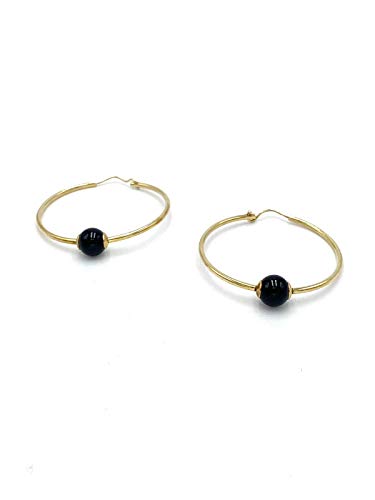 Elletre Orecchini Cerchio Argento .925 e Onice Nero