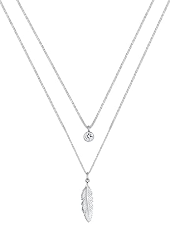 Elli Collana Donne Piuma Boho con Cristallo in Argento Sterlino 925