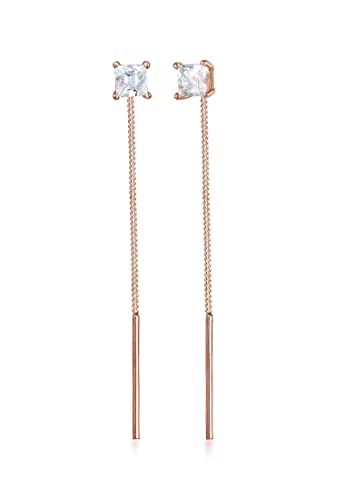 Elli Orecchini Donne Orecchini Pendenti Geo Minimale Pull Through con Cristalli di Zirconia in Argento Sterlino 925