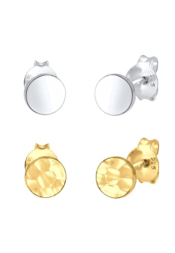 Elli Orecchini Donne Orecchini a Perno Set di 2 Martellato Lucido in Argento Sterlino 925