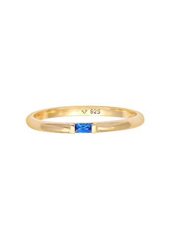 Elli PREMIUM Anelli Argento Sterling 925 dorato con zaffiro sintetico rettangolare semplice per donna