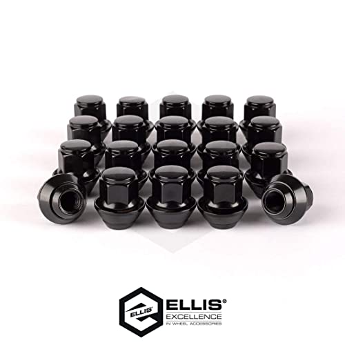 Ellis Excellence, Set di dadi per cerchi in lega, colore nero, M12 x 1,5, rondella conica, 19 mm, esagonale, per uso con cerchi in lega per auto (confezione da 20)