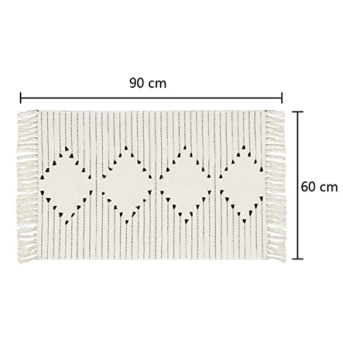 Elloevn Tappeto in cotone stampato moderno tessuto a mano con nappe, lavabile, per camera da letto, soggiorno, cucina, 60 x 90 cm