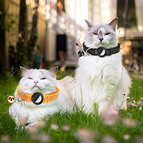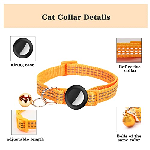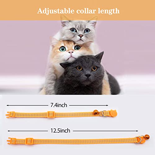 Ellxen Collare per gatti con,filo riflettente, Collare Gatto Regolabile Riflettente, Colorato Collari per Gatti con Campanellino e Fibbia di Sicurezza,fibbia staccabile(Arancia)