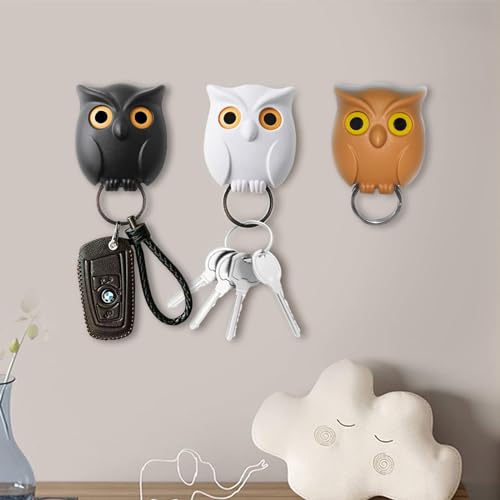 Materiale di alta qualità: il simpatico gancio a forma di gufo è realizzato in plastica di alta qualità, ha una lunga durata ed è dotato di un anello portachiavi, ogni set contiene 3 portachiavi, basta posizionare la chiave sul portachiavi.