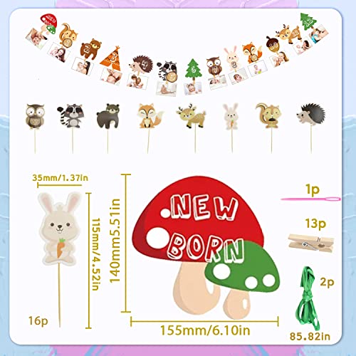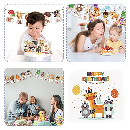 ELNLE Fotogirande 1° compleanno, ghirlanda decorativa per foto da 1 a 12 mesi, con 18 pezzi, decorazione per torte, animali, per ragazze, ragazzi, feste, foto da appendere