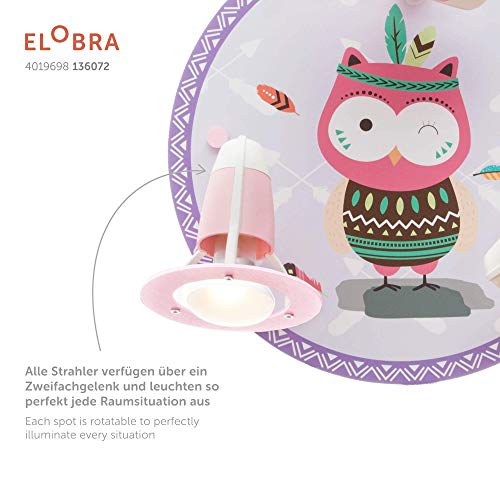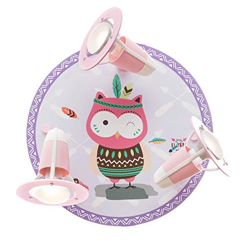 Elobra Little Indians - Lampada da parete e soffitto in legno, a forma di gufo, 40 W, colore rosa