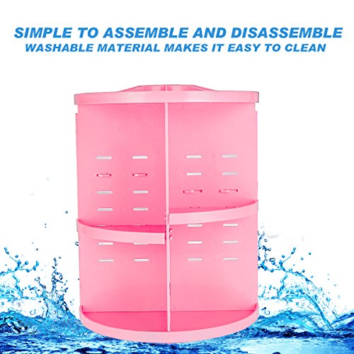 ELOKI 360 girante makeup organizer porta trucchi, DIY staccabile borsa di stoccaggio di grande capacità acrilico organizer per cosmetici scatola supporto, ideale per lavabo da appoggio e da viaggio (Pink)