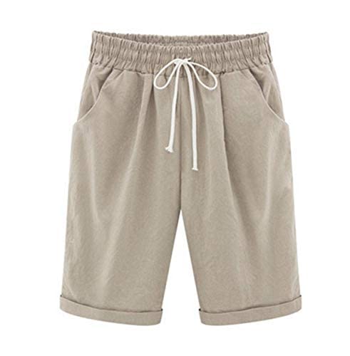 Elonglin Pantaloncini Donna Estivi in Cotone Taglie Forti a Vita Alta sopra Ginocchio Casual Larghi con Cintura Elastica Tasche Laterali Cachi Taglia Vita Italiana 4XL (Asiatica 6XL)