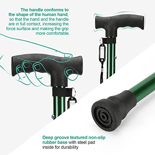 ELorgzem Bastone da Passeggio Pieghevole Regolabile, Bastone da Passeggio Regolabile in Cinque Misure, Bastoni da Passeggio Pieghevoli per Donne e Uomini (Verde)