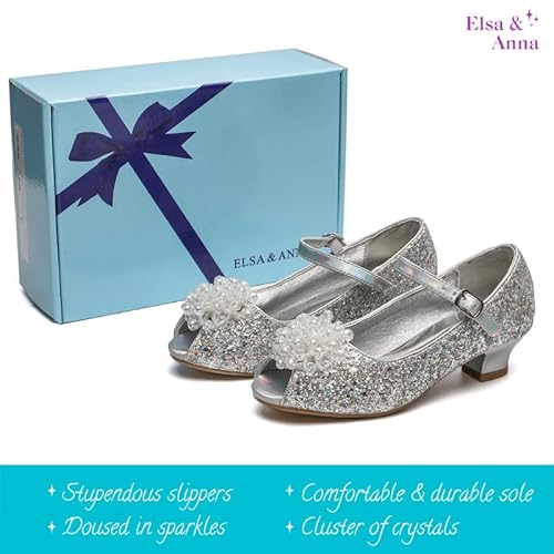 ELSA & ANNA Scarpe da principessa per ragazze - Scarpe con tacco 3cm - Scarpe per costumi Elsa glitterate per feste e compleanni - Tacchi alti per bambini (SIL12)