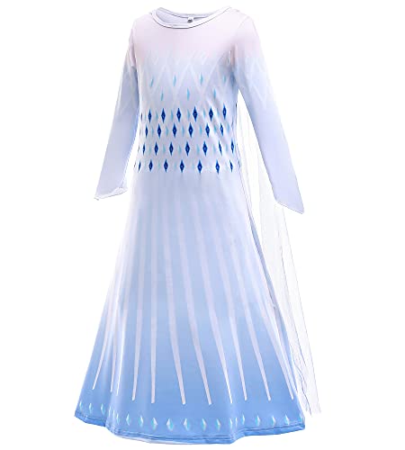 ELSA vestito bambina ELSA 2 costume con parrucca, corona, mazza, guanti 6-7 anni (130, K31)