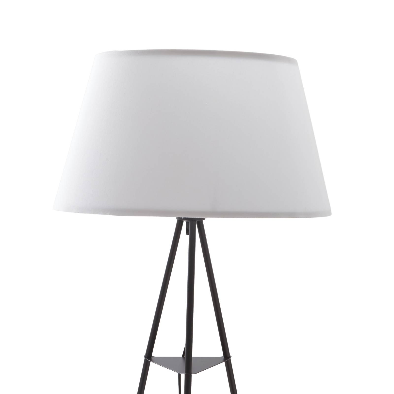 Elegante lampada da terra tripode in tessuto Elsika con paralume bianco e piccola mensolaElsika è una splendida fonte di luce per la zona giorno e la zona notte. Il paralume è in tessuto bianco, ha una forma rotonda e si allarga leggermente verso il fondo. La luce penetra in modo morbido, uniforme e accogliente nell'ambiente, in modo che possiate sentirvi completamente a vostro agio e rilassati quando lasciate che la sera svanisca nel bagliore di Elsika quando è accesa come illuminazione d'accento. Inoltre, la lampada da terra ha una struttura a treppiede in filigrana, nera e in metallo. Nella parte superiore si trova un piccolo ma accattivante ripiano di forma triangolare, adatto per riporre oggetti di piccole dimensioni come il telefono cellulare. La lampada viene azionata tramite un interruttore a pedale nella linea di alimentazione.