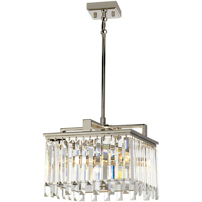 Elstead Aries - Lampadario a sospensione piccolo a 4 luci | Finitura: nichelato lucido con cristalli di vetro K5 | Materiale: acciaio | Altezza (cm): 27,6 | Altezza min (cm): 30,4 | Altezza massima (cm): 130,6 | Larghezza (cm): 32 | Sporgenza (cm): 32 | No. di luci: 4 | Tipo di lampada: E14 | Dimmerabile: Sì | Potenza (max): 40