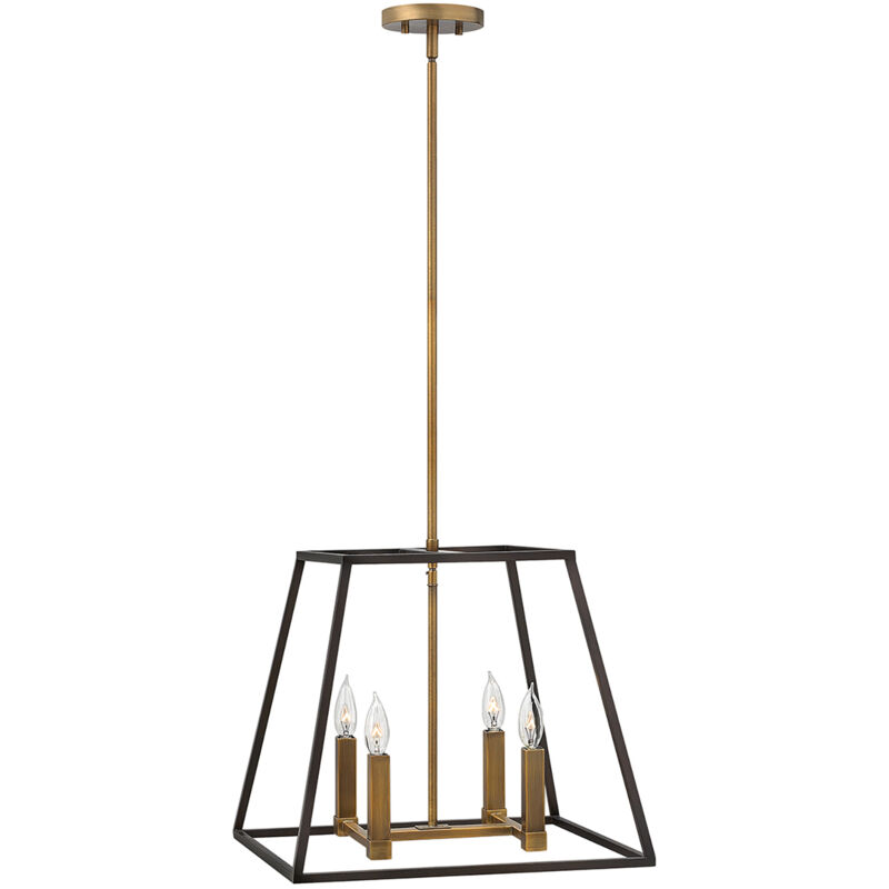 Collezione Fu Lighton BELLEZZA MINIMALISTA Lampada a sospensione a 4 luci. La bellezza minimalista di Fulton enfatizza il less is more con uno stile industriale vintage. Questo design a gabbia conica, pulito e arioso, è costruito senza vetro e gli esclusivi portalampade quadrati poggiano su un discreto gruppo a forma di H.