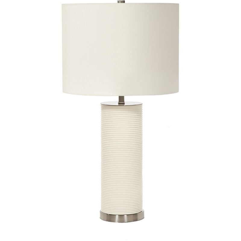 Collezione Ripple DETTAGLI PREGIATI Lampada da tavolo a 1 luce - Bianco. Lampada da tavolo in resina bianca con dettagli in nichel lucido. Include un paralume rigido in finto lino bianco.