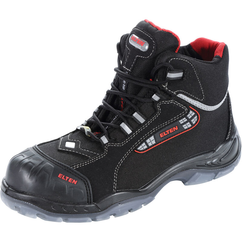 Scarpa di sicurezza della serie TRAINERS. * Fodera in tessuto traspirante. * Soletta plantare ESD PRO black. * Suola in TPU/PU TRAINERS, antiscivolo. * Spunterbo in PU per la protezione del materiale esterno. * Prive di metallo e cuoio. * Inserti riflettenti. * Caratteristiche ESD. * Tomaia in microfibra Fashmo™ e tessuto CORDURA®, entrambi idrorepellenti. Resistente all'acqua e allo sporco, antistrappo e antiabrasione, traspirante. * Linguetta chiusa e imbottita. Norma: EN ISO 20345:2011 S3 SRC Einlagenversorgung baumustergeprüft nach DGUV Regel 191. Nota: Già disponibili nelle misure UE 39 - 46, disponibili su ordinazione nelle misure UE 38 - 47. Dati tecnici Proprietà elettrostatiche EGB/ESD Tipo di prodotto Stivali di sicurezza Serie SANDER Genere da uomo Norma Fornitura di inserti omologati a norma DGUV 191 Colore nero / rosso Con materiale riflettente (buona visibilità) sì Grado di protezione S3 Resistenza antiperforazione Tessuto Numero di scarpa UE 41 Tomaia Cordura