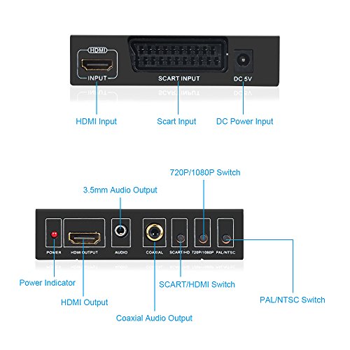 SCART to HDMI: convert 480p/576p/720p scart signal (RGB or CVBS) into 1080P HD HDMI signal output.