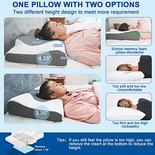 Elviros Cuscino Cervicale Regolabile in Memory Foam, Ortopedico, per Sostegno del Collo, per Dolore alla Spalla, Ergonomico, 61 x 8,5/12,5 x 43cm