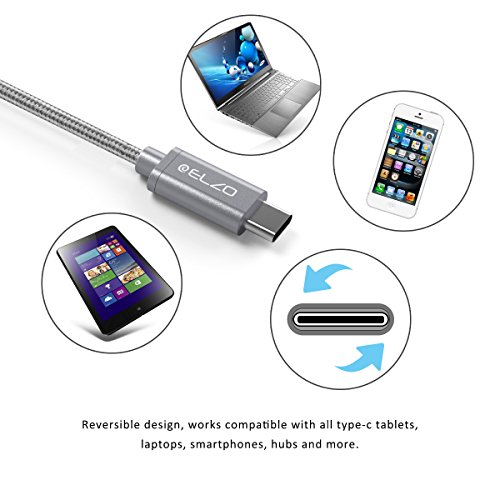 ELZO - Cavo USB Tipo C Rivestito in Nylon Intrecciato, 3A 1,8M/6ft Cavo di Ricarica USB 3.0 Trasmissione e Ricarica per Huawei P9, Nexus 5X/6P, OnePlus 2/3, Nintendo Switch, ChromeBook Pixel e Altri