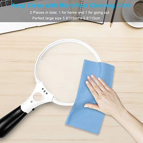 ELZO Lente d'ingrandimento con Luce 2X 4X 10X, Lente d'ingrandimento da Lettura illuminata con 3 LED, alta chiarezza e peso leggero, per anziani, gioiellieri, libri, con un panno per lente e sacchetto