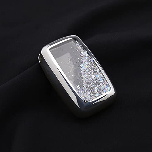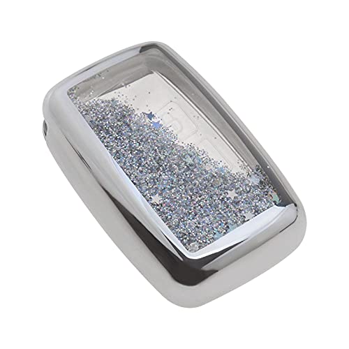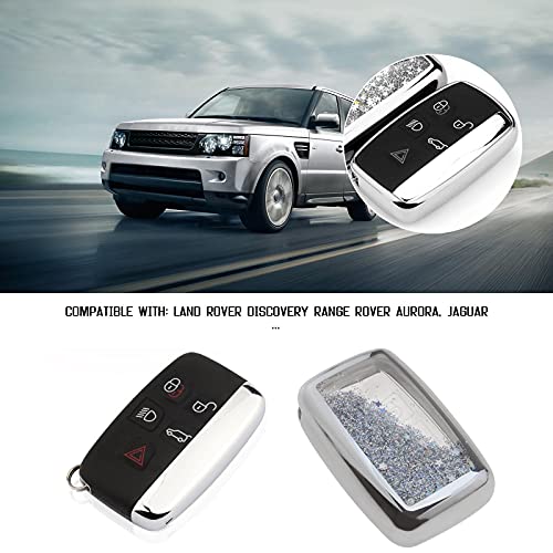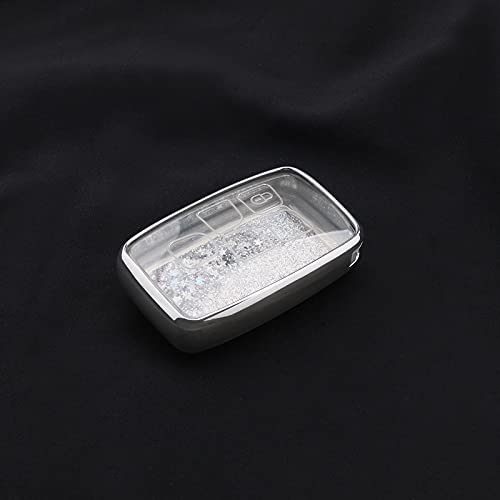 EMagTech Cover per chiave auto in TPU con 5 pulsanti per auto, a prova di goccia, compatibile con Land Rover Jaguar Stars Snow Globe Silver/Metallic Silver