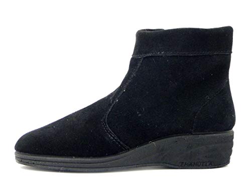 Emanuela 852 nero pantofola donna con cerniera made in italy tomaia in vera pelle camosciata fodera agnellata di vera lana lavabili in lavatrice a 30 gradi nero 39