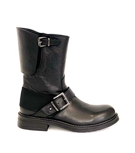EMANUELLE VEE 492Y-404-20-CA - Stivale Donna Pelle Modello Biker (38 - Cow Aldo Black)
