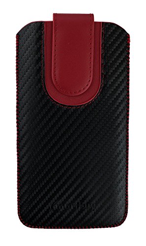 Emartbuy Nero/Rosso Carbonio Fibre Finish PU Pelle Custodia Case Cover Sleeve (Size LM4) con Linguetta Compatibile con Smartphone Elencati sotto